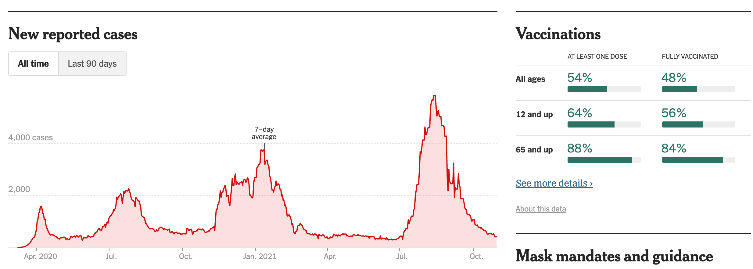 i keep having to squash a sneaky hope that "back to normal" is not only possible but coming soon. here are the most current COVID stats for Louisiana from the NYT (there's a link below the image to check your state). meanwhile, we are throwing away unused vaccines and ignoring the fact that each wave of spikes has been bigger than the last.